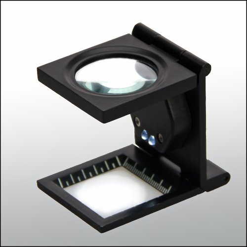 15mm lins med ställbart fokus LED belysning Mätskala i botten Yttermått utfälld ca 40×40 mm Yttermått hopfälld ca 40×17 mm