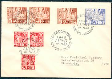 Komplett årgång FDC med jubileumsmärken. Bilden visar ett FDC från året.
