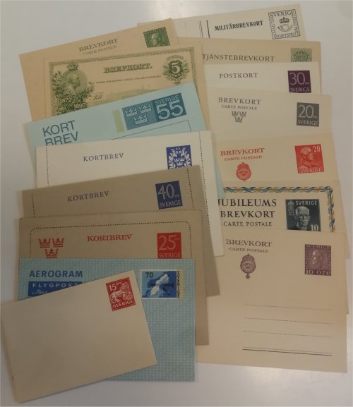25 olika ostämplade / oanvända svenska helsaker. Bilden visar en exempel bild på några som ingår, övrigt innehåll kan variera.