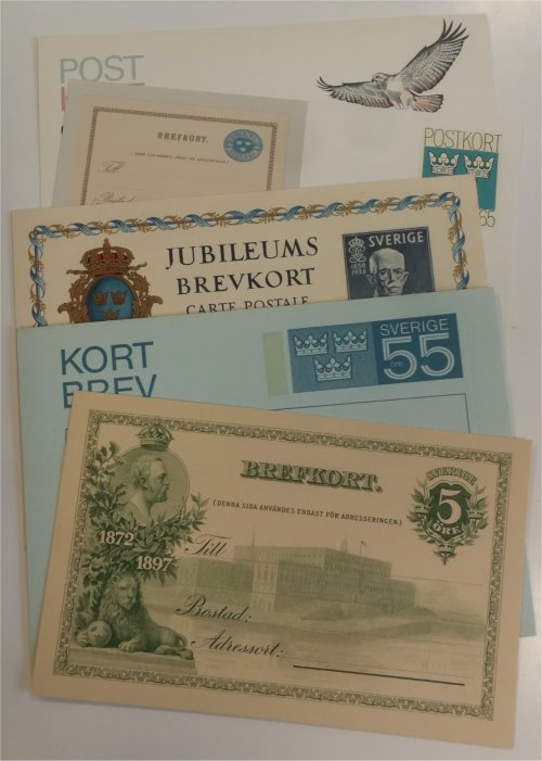 75 olika ostämplade / oanvända svenska helsaker. Bilden visar en exempel bild på några som ingår, övrigt innehåll kan variera.