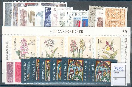 Kompletta postfriska årgång inklusive par enligt bilden.
