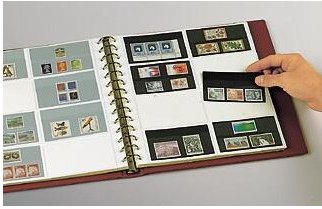 6 fickor/sida. Fickornas höjd 47 mm. Helt av folie, dubbelsidiga (fickor på båda sidor), svart bakgrund. Format: 240 x 305 mm Fickornas längd är 220 mm. Hålstansning för 4 ringar med avstånd 80-80-80 mm Paket med 5 blad