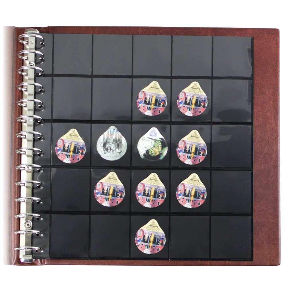 Dubbelsidgt blad av svart folie med 25 inviduella fickor per sida för montering av upptill 50 x 55 mm.