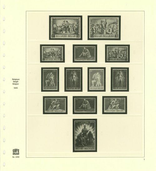 Tilläggsblad till bladsatsen 2422. Specialblad m ed förtryck för de fem 9-blocken utgivna till Stockholmia 1955. En "vanlig" serie med 5 lösa märken ingår på bladen i satsen 2422.
