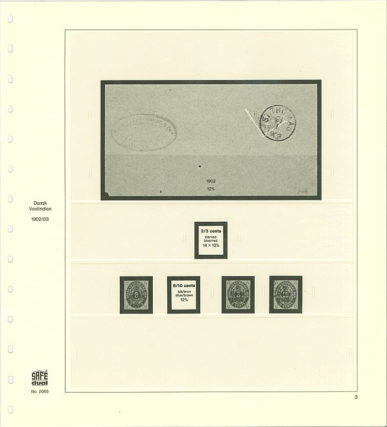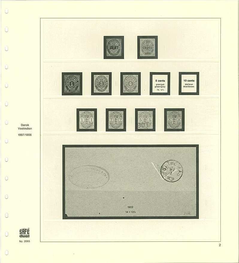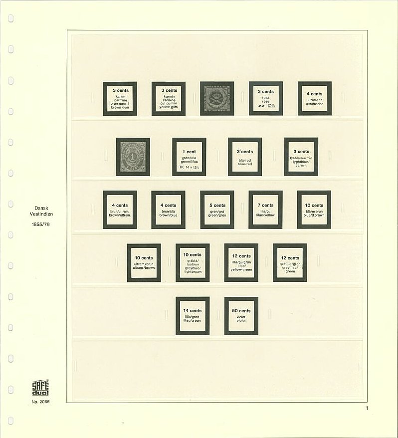 Bladsats med förtryck och fickor för samtliga frimärken utgivna i Danska Västinden.