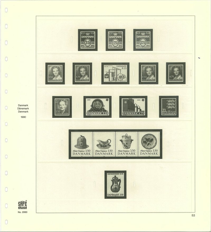 Förtrycksblad med fickor Danmark 1980-2001.