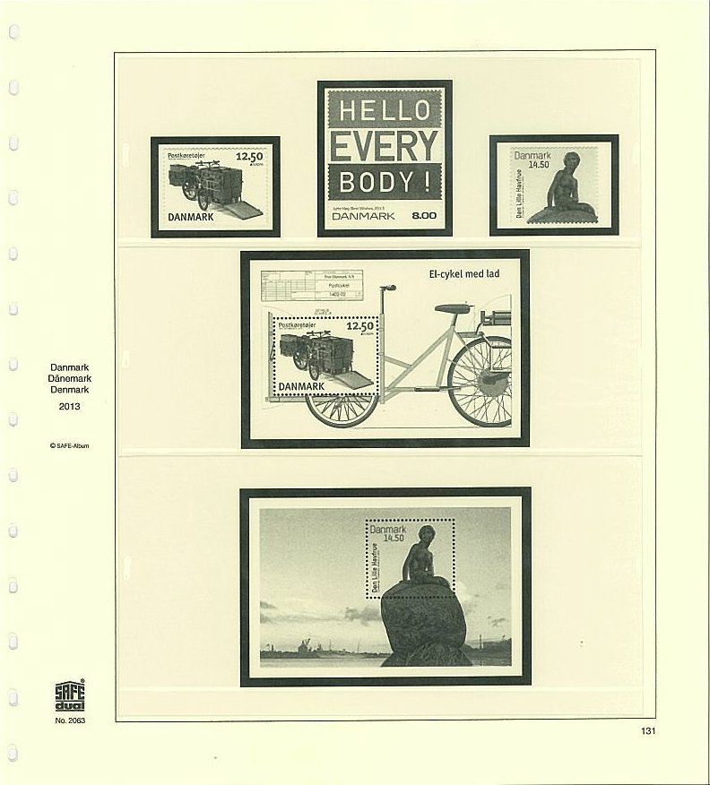 Kompletteringsblad för 2023 års frimärken till SAFE Dual album Danmark. Med fickor och förtryck.