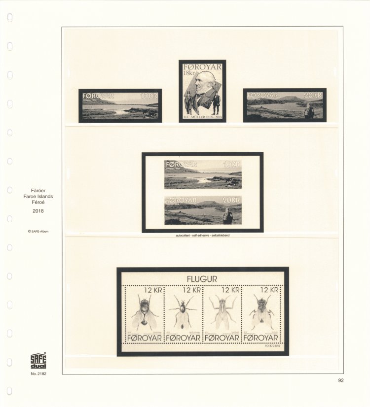 Kompletteringsblad för 2018 års frimärken till SAFE Dual album Färöarna. Med fickor och förtryck.