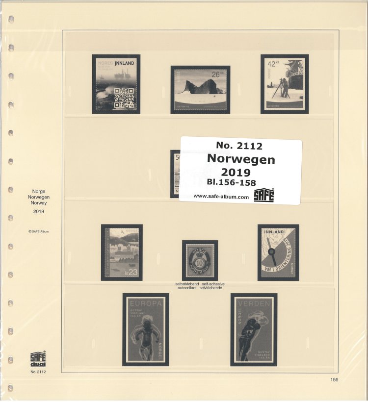 Kompletteringsblad för 2019 års frimärken till SAFE Dual album Norge. Med fickor och förtryck.