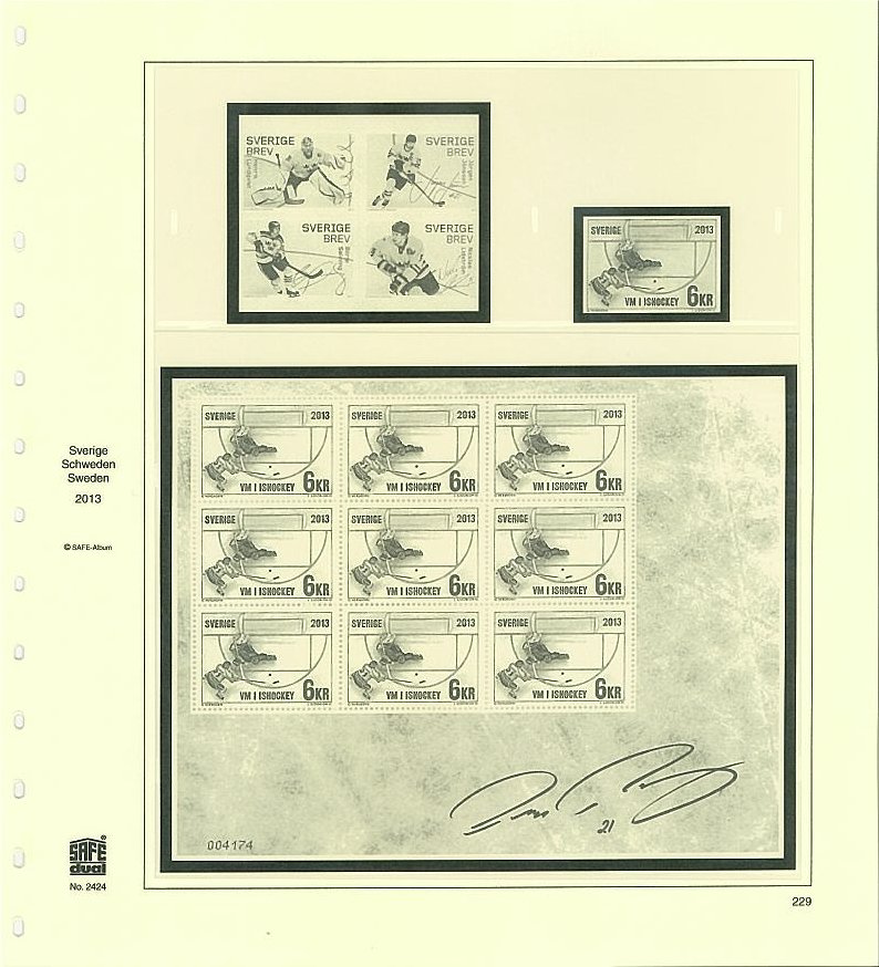 Kompletteringsblad för 2013 års frimärken till SAFE Dual album Sverige. Med fickor och förtryck.