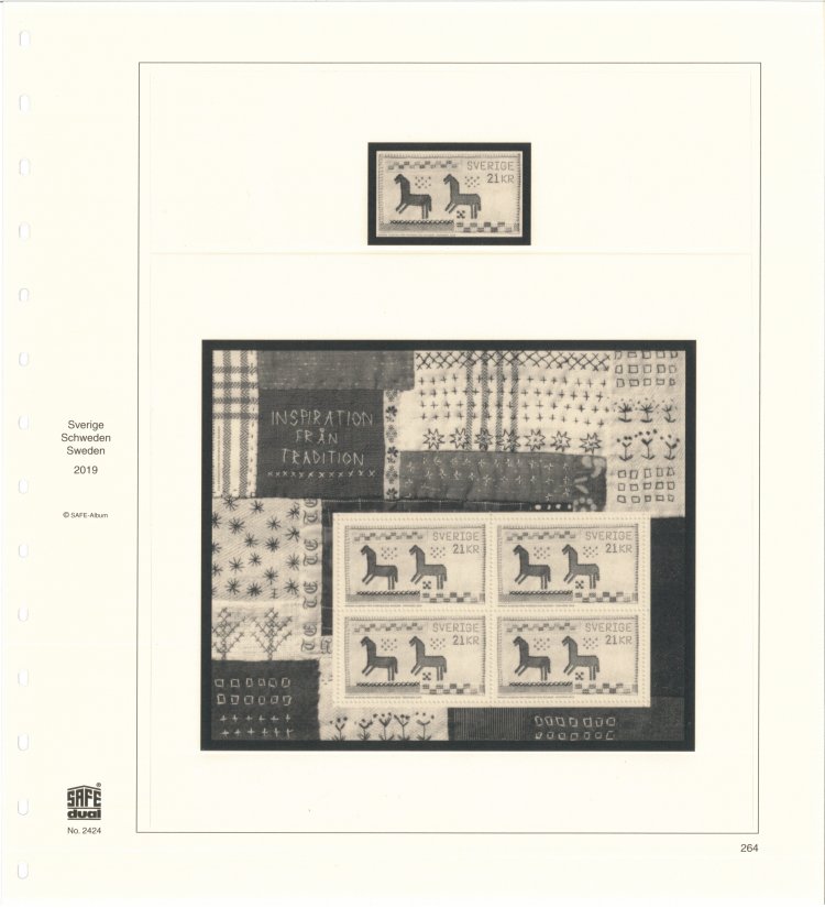 Kompletteringsblad för 2019 års frimärken till SAFE Dual album Sverige. Med fickor och förtryck.