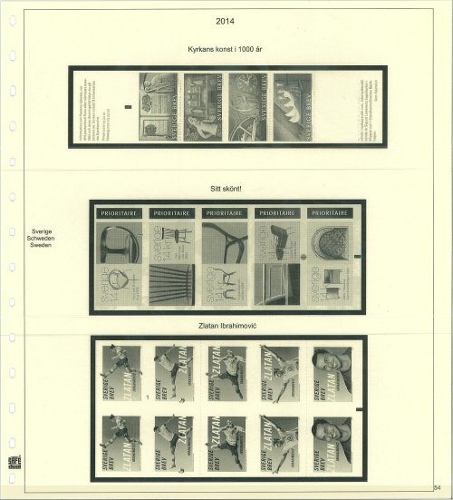 Kompletteringsblad för 2014 års frimärken till SAFE Dual album Sverige. Med fickor och förtryck. Inkl. blad till miniarken