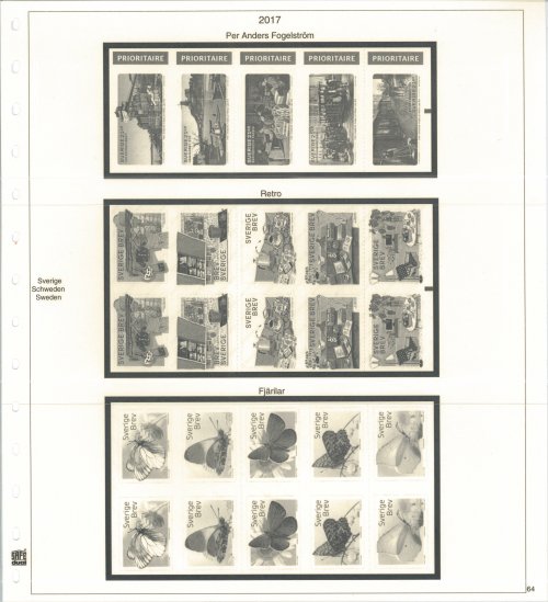 Kompletteringsblad för 2017 års frimärken till SAFE Dual album Sverige. Med fickor och förtryck. Inkl. blad till miniarken