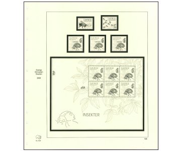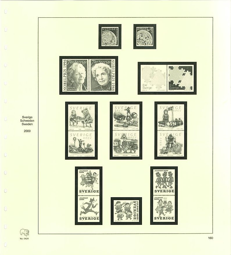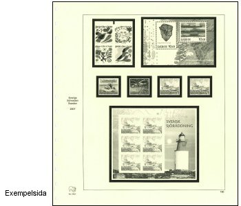 Förtrycksblad utan fickor för samtliga svenska frimärken utgivna år 2000-2009.