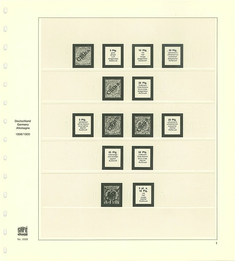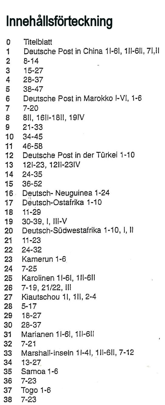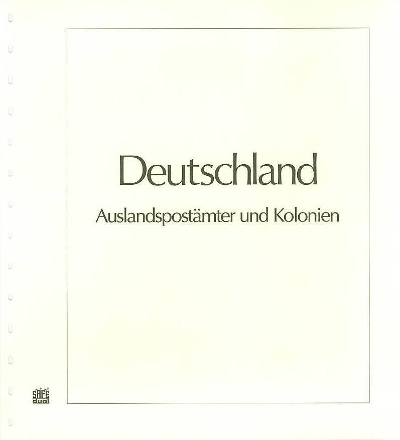 Förtrycksblad med fickor för tyska Kolonier och postkontor i utlandet (Turkiet, Marocko och Kina) innan 1:a världskriget.
