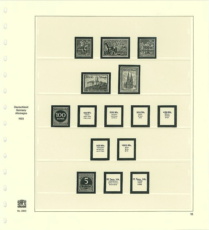 Förtrycksblad med fickor Tyska Riket 1923-1932, Weimarrepubliken. Inkl. de samtida tjänste m.m. Denna bladsats passar till alla Favorit ringpärmar. Antal blad: 11 + titelblad
