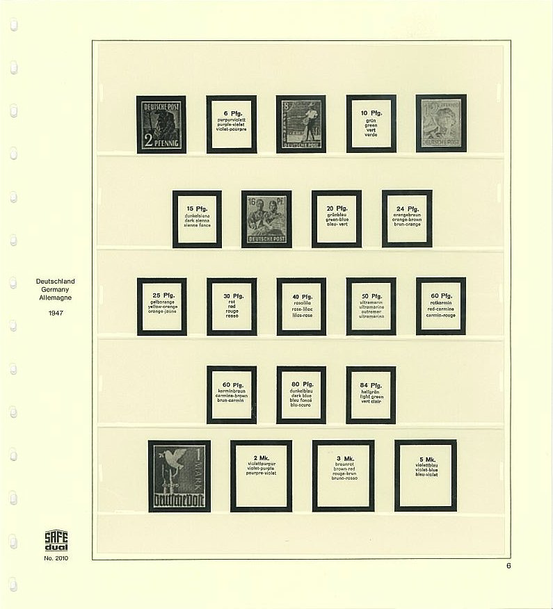 Förtrycksblad med fickor för den Sovjetiska zonen efter 2:a världskriget. Lokala utgåvor som t.ex. Plauen ingår ej. Denna bladsats passar till alla Favorit ringpärmar. Antal blad: 21 + titelblad