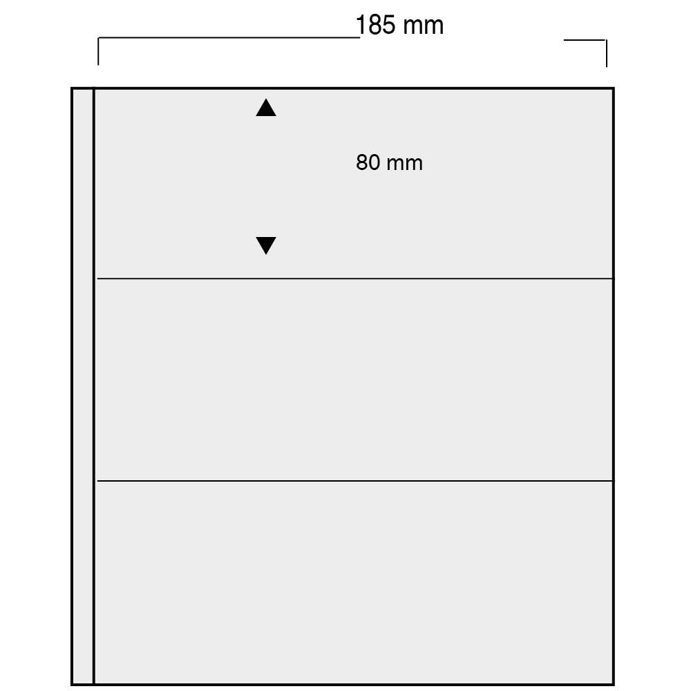 Blad för Häften, Maxikort, Frimärken, Vykort och Sedlar Dessa blad är transparenta och beige bakgrundsblad medföljer. Bladen är alltså enkelsidiga. Fickornas bredd: 185 mm Paket med 5 blad