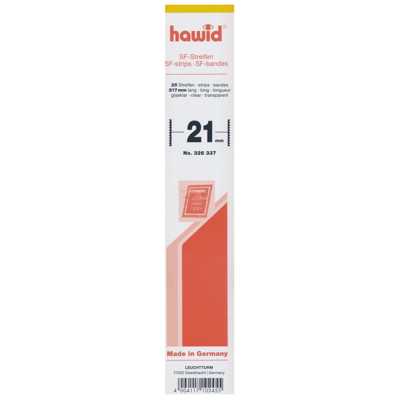 Fickorna är gummerade på baksidan. Format: Längd 217 mm För frimärken med höjd 24 mm Färg: glasklar bakgrund Förpackning med 25 fickor Fickorna finns i fler olika storlekar, se här