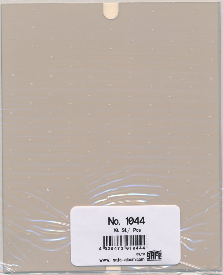 Extra b lad för Vykort i det lilla gamla formatet 90×140 mm. Bladen är transparenta och kan köpas med eller utan beige folieinlägg för dubbelsidig montering. Levereras i 10-pack