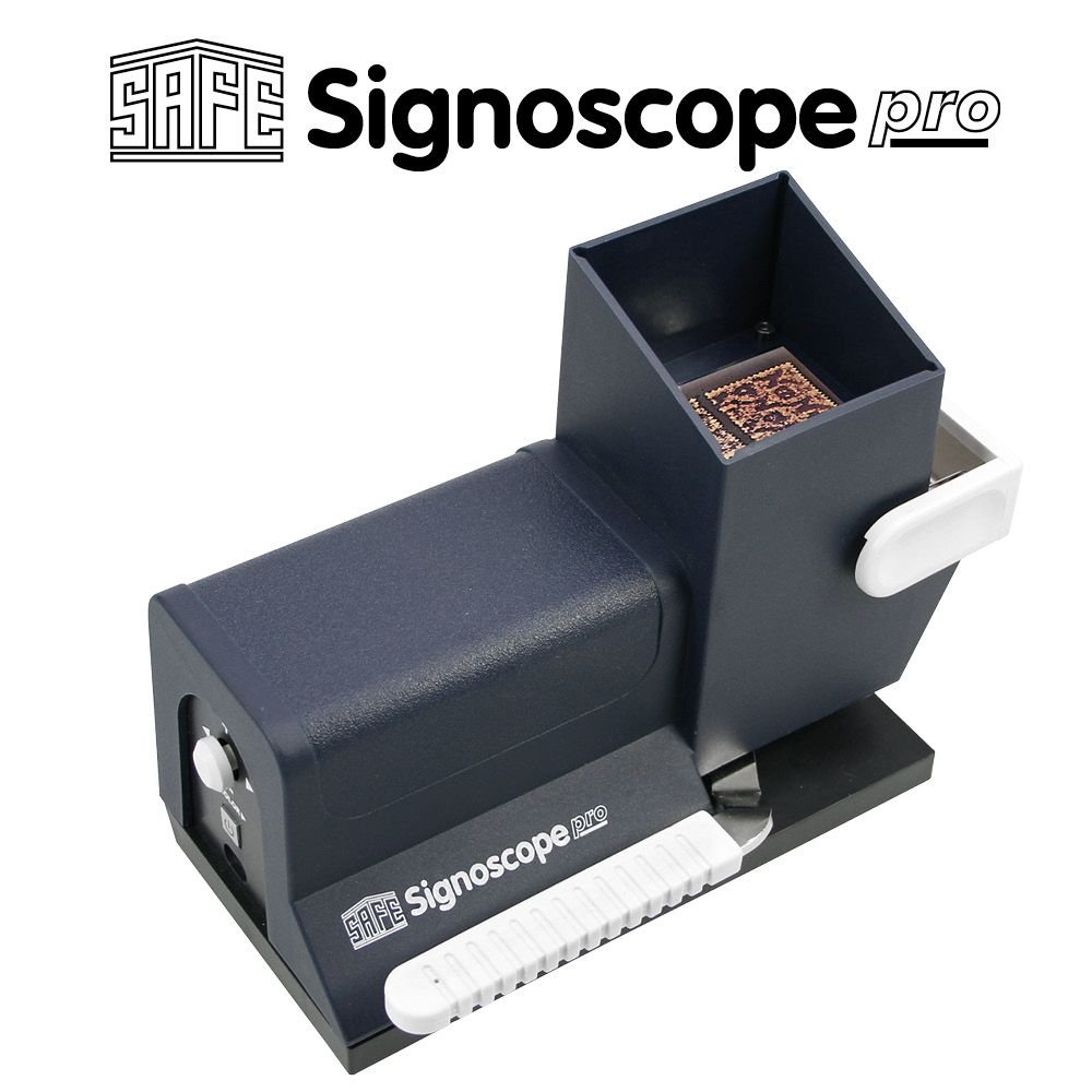 Det är så enkelt och går så snabbt. Lägg frimärket i apparaten, tänd ljuset och vattenmärket syns om det finns något. Signoscope testar även papperet i övrigt och kan upptäcka reparationer, vikta tänder, spår efter fastsättare, tunna fläckar m.m.