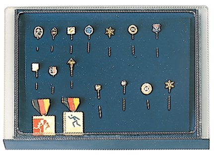 Myntbricka med filt för fastnålning av t.ex. pins och nålmärken.