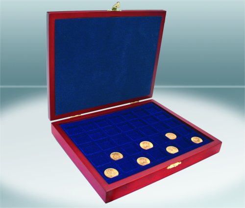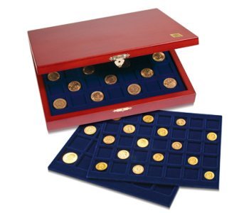 Levereras med tre brickor med vardera 24 kvadratiska fack med diametern 33 mm. Totalt plats för 72 mynt. Passar t.ex. svenska 2 kronor. (NOVA 6333)