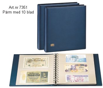 Extra blad till sedelalbum 7351 med 2 fickor. Bladen är transparanta med bakgrundsblad Levereras i 5-pack
