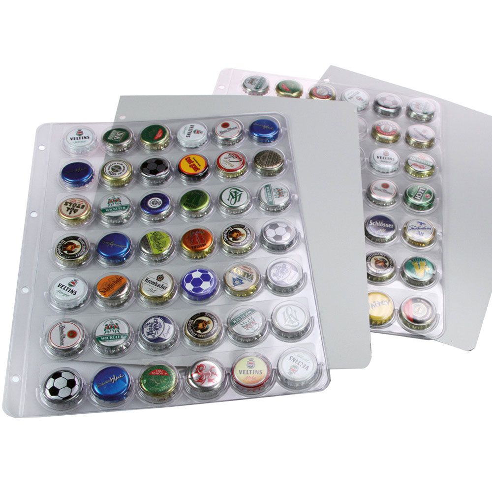 Sammetsklätt blad med fördjupningar till 30 kapsyler. Helt transparent skyddsficka medföljer. Format: 228 x 185 mm
