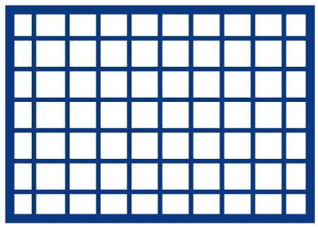 Innerhöjd 12 mm. Låda till Premiumskåpet med fackindelningen enligt bilden, klädd i blå sammet. 48 kvadratiska fack á 33mm Passar t.ex. 2 kronor