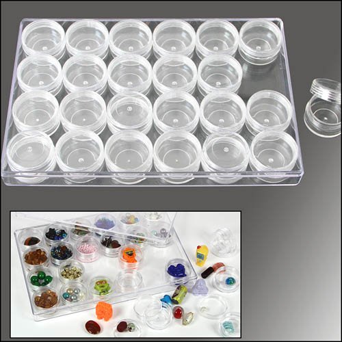 Box i akryl med 24 runda förvaringskapslar. Perfekt för förvaring av olika små föremål.