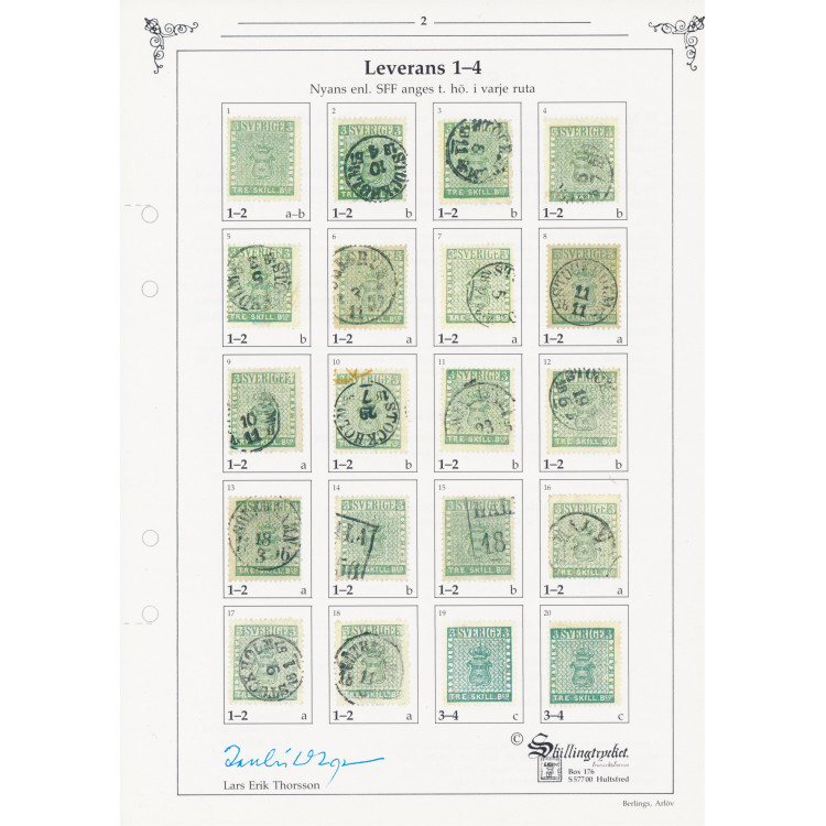 Omfattar 34 sidor med beskrivningar och uppgifter om samtliga tryckleveranser. Totalt finns 320 märken avbildade och samtliga har även försetts med nyansbeteckning enligt Facit. Sammanställd av Lars-Erik Thorsson.