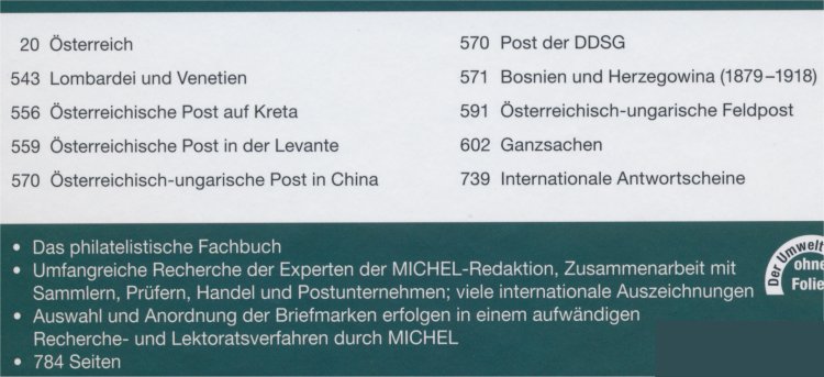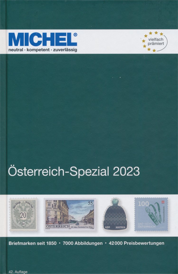 Specialkatalog över Österrikes frimärken i färg.