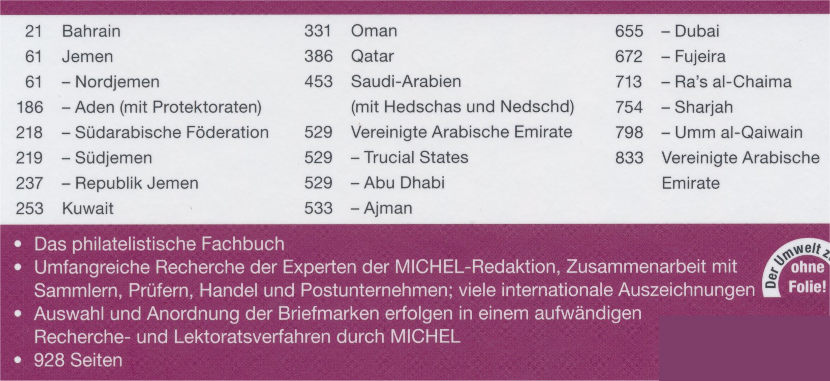 UK 10/1 Nordarabien och Iran. Inbunden katalog i färg Katalogen är tyskspråkig. Alla priser i Euro.